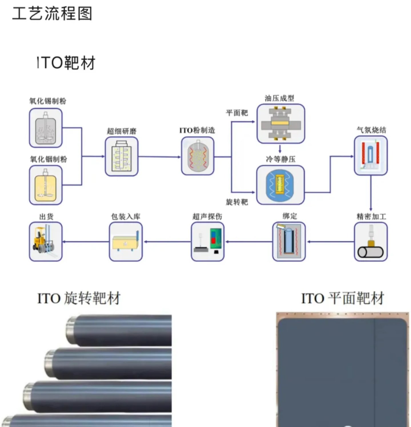 而ITO靶材主要依赖显示面板(LCD/OLED)和光伏(HJT电池),增速平稳(CAGR约8%-10%),虽然柔性显示、大尺寸面板需求可能带来结构性增长,这些高端市场仍主要依赖进口(如日矿金属、东曹)。