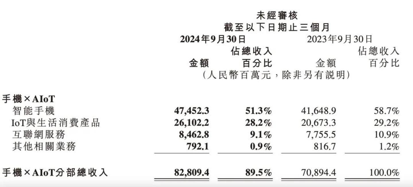 2024Q3财报中写道,截至2024年9月30日,AIoT平台已连接的IoT设备(不包括智能手机、平板及笔记本电脑)数达到8.6亿台,同比增长23.2%;拥有五件及以上连接至AIoT平台的设备(不包括智能手机、平板及笔记本电脑)用户数达到1710万,同比增长24.9%。