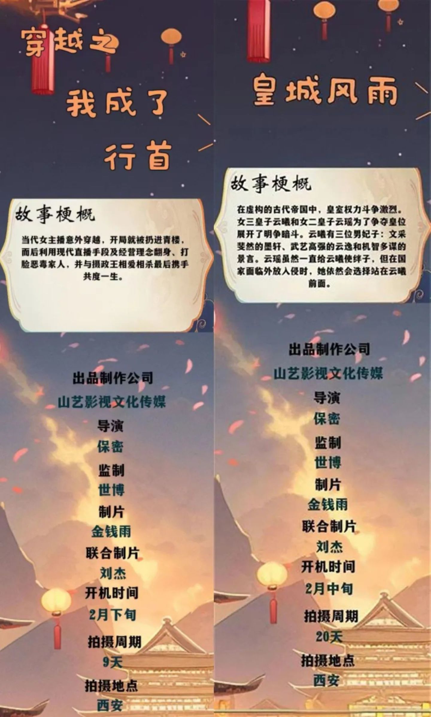 此后娱乐资本论也发起了调查,我们发现其招募海报上的演员统筹微信已设置不可添加,而组讯上的“山艺影视文化传媒”也与短剧出品公司毫无关系,这个剧组并非目前网友爆出的《穿越之我成了行首》,而是《皇城风雨》,但是两个剧组的主创人员名单和进组信息一模一样。