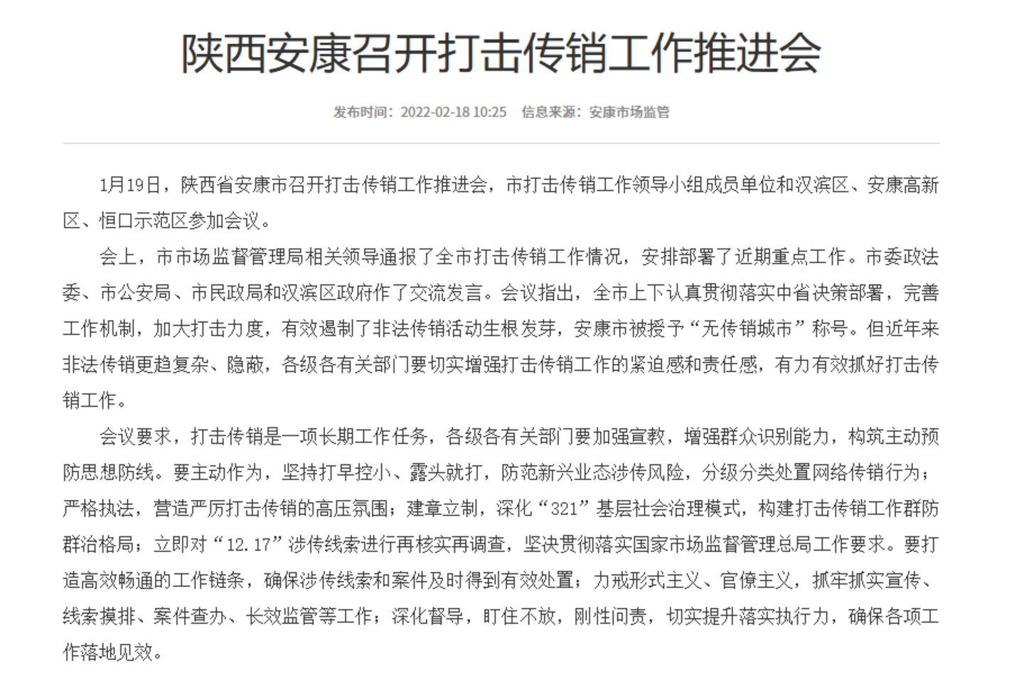 这个原因,主要是和安康南当地的独特民情有关,像2018年,安康一夜捣毁传销窝点12处。截至2022年,安康仍需通过常态化行动防范传销反弹。