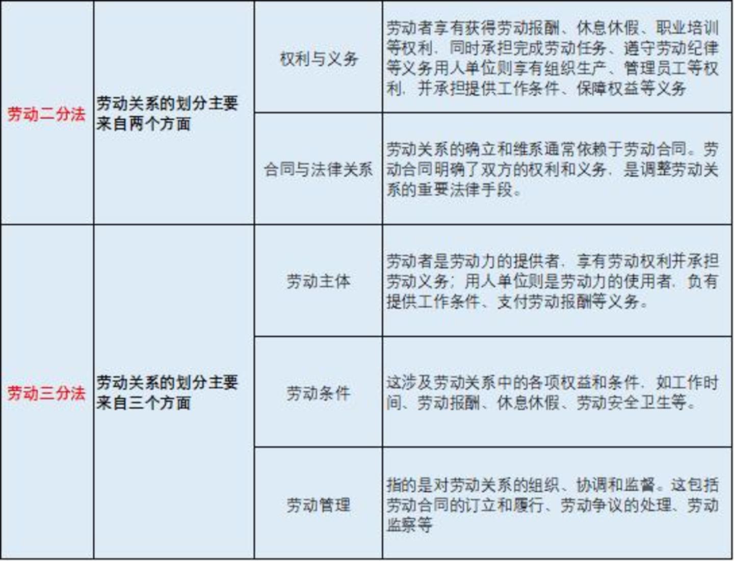图: 劳动二分法和劳动三分法,来源: 法行宝