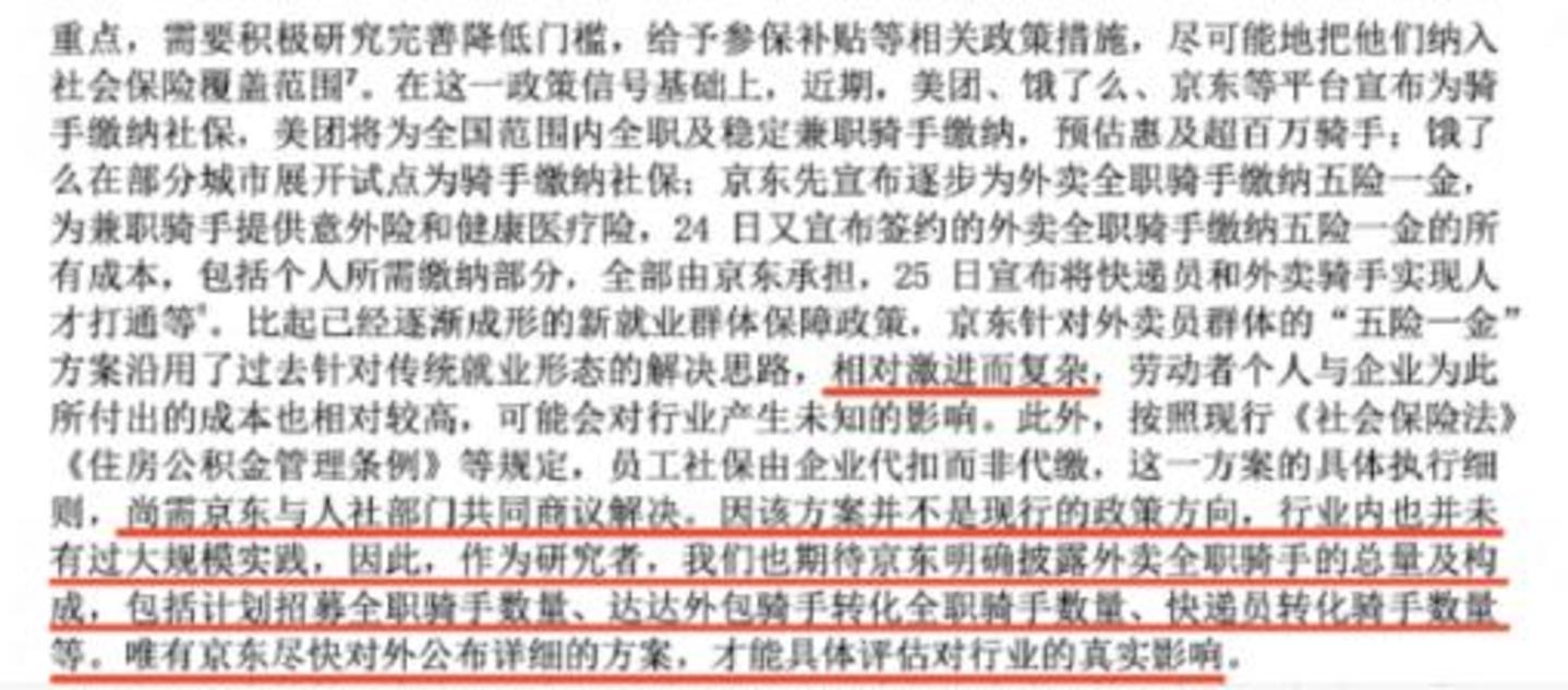 2、从实际情况看,京东暂且难以承担规模性全职骑手的全额社保。