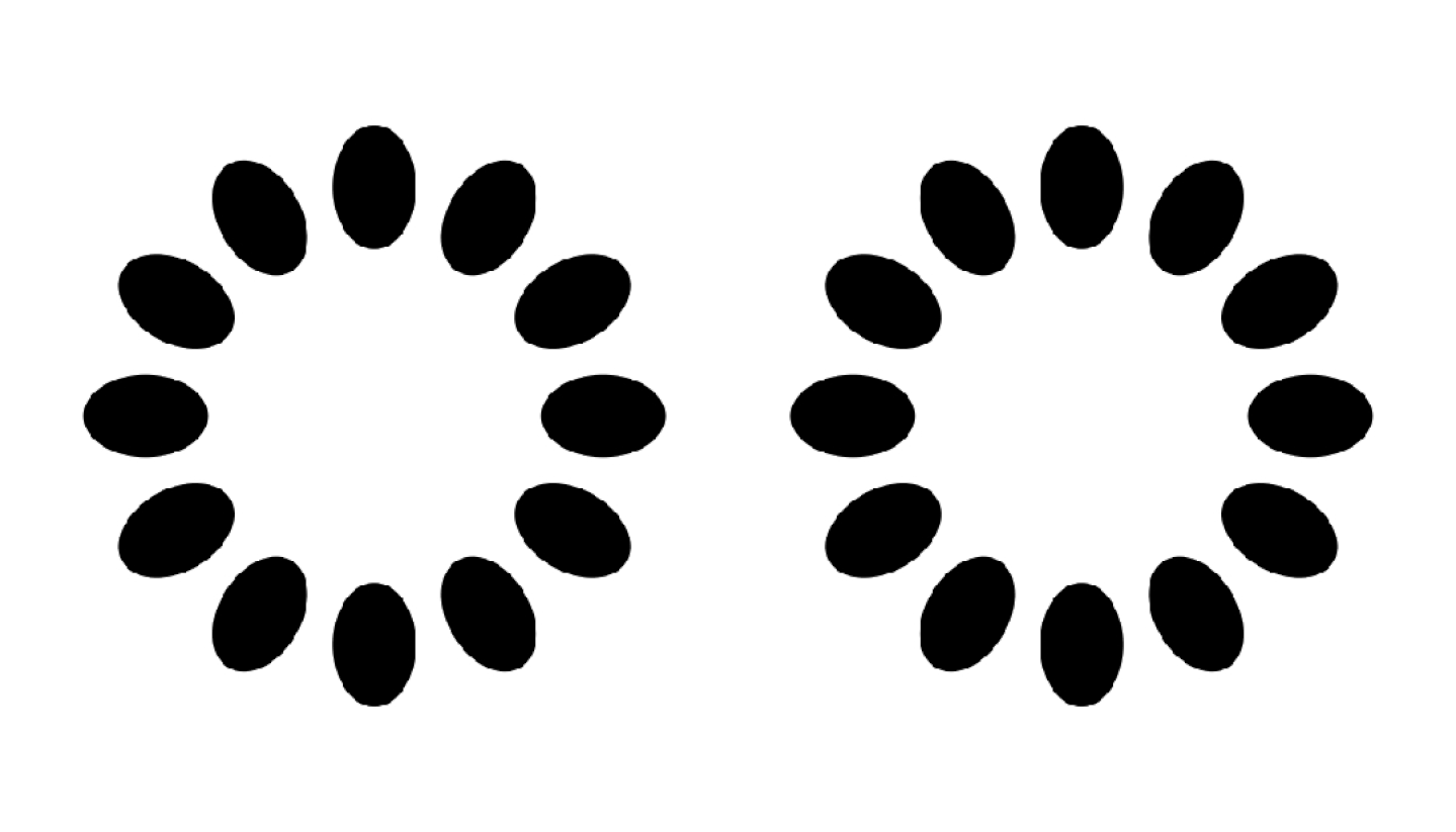 ▷反转φ现象,你是否感觉图在连续地转动?事实上这张gif是几帧连续的正片紧接几帧连续的负片,用前景背景的切换欺骗视觉系统对运动信号的处理。来源: Akiyoshi Kitaoka 2020