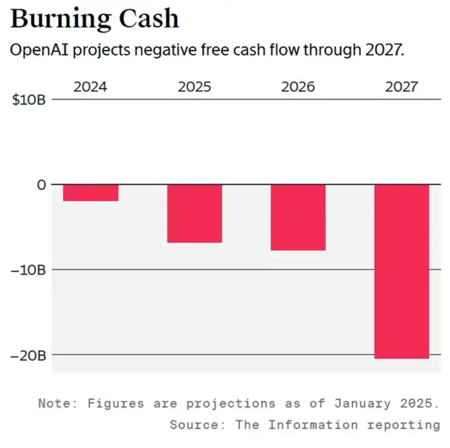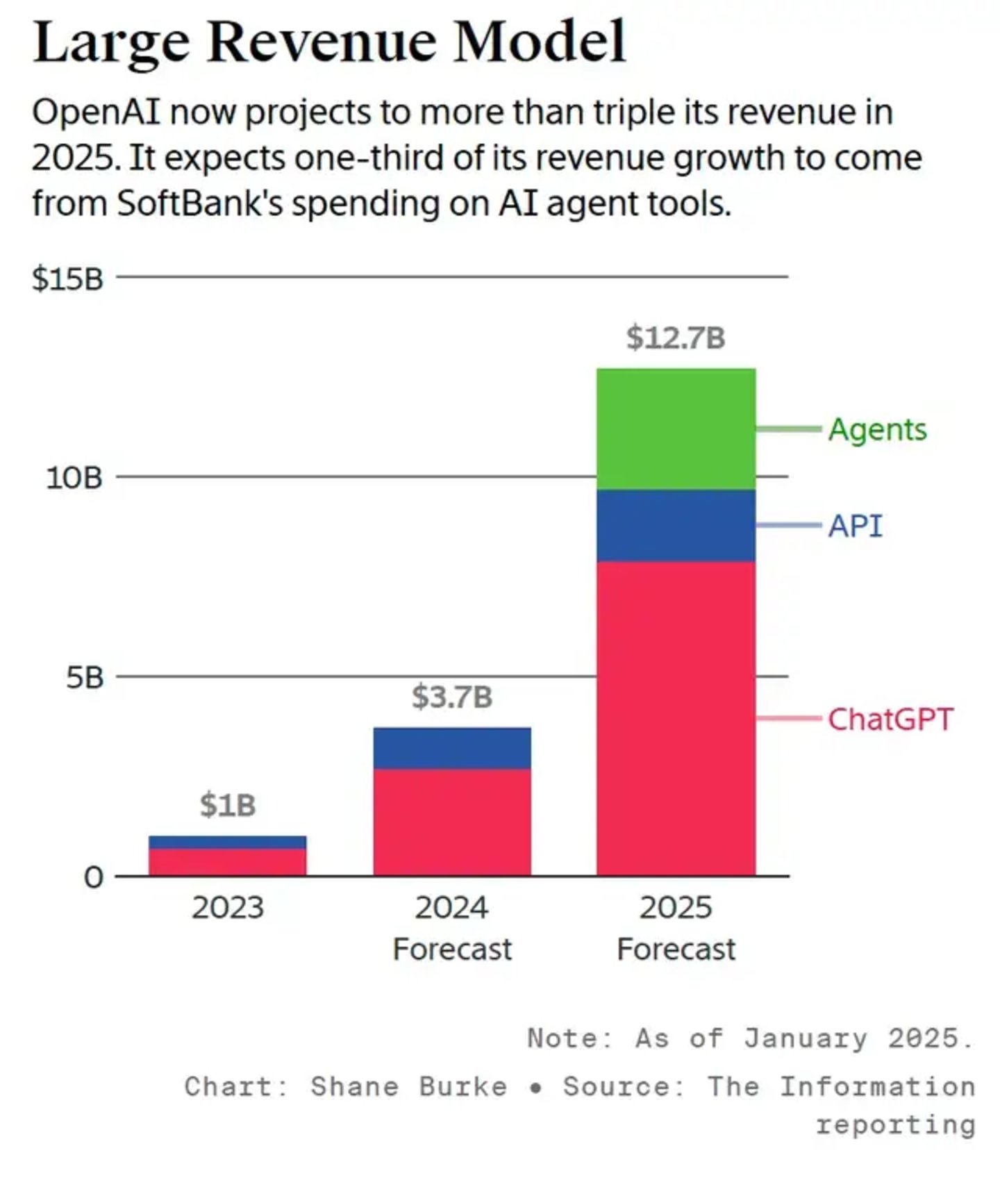 OpenAI今年已经向投资者透露,一方面预计今年收⼊将从37亿美元,增⻓⾄超过125亿美元,实现三倍以上的增⻓;但同时烧钱速度仍然会加快,在Stargate建设完成之后实现盈利。