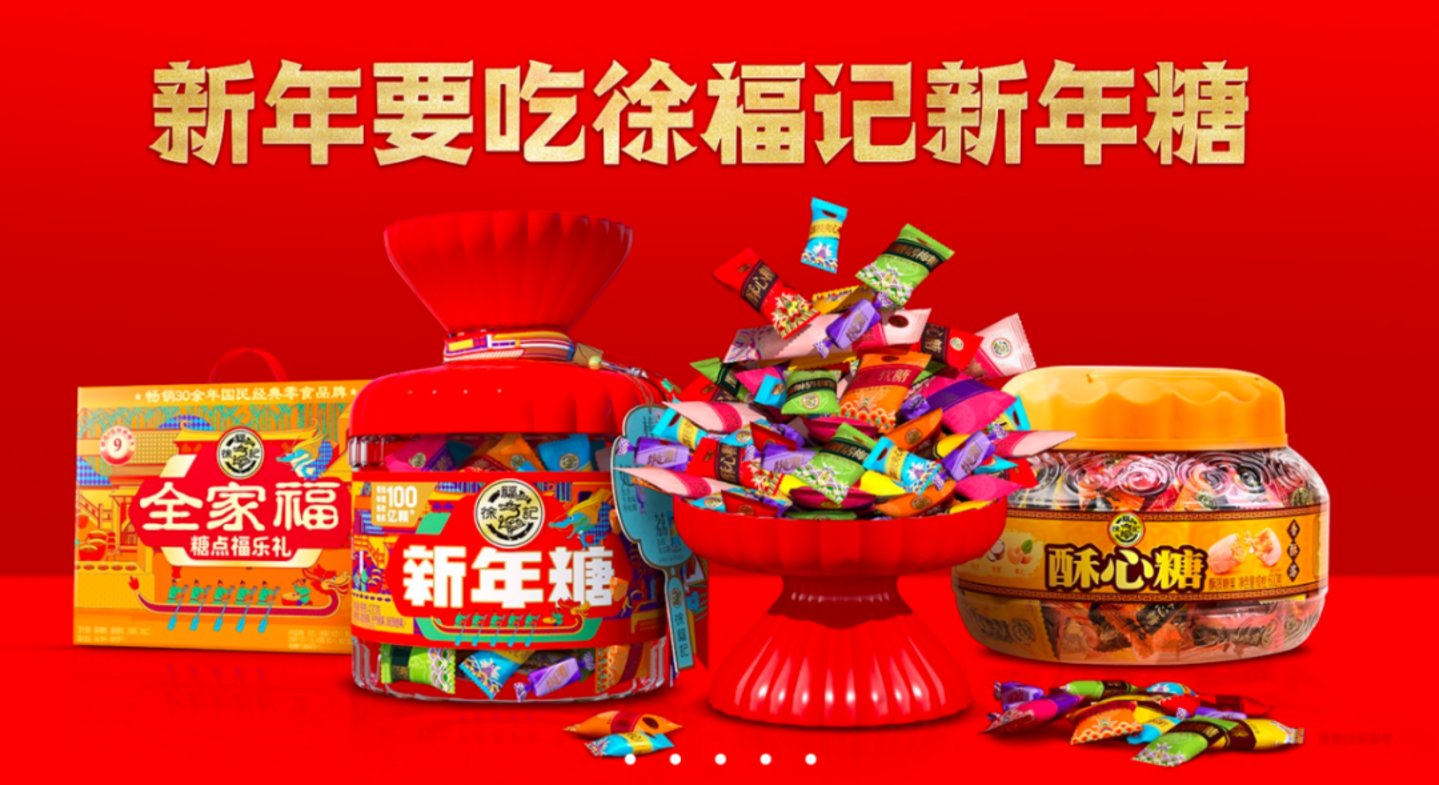 但前几年,初出茅庐的徐福记不温不火。当时,徐家老二徐乘注意到,每逢春节是糖果的销售旺季,不如强化糖果新年的属性。于是,徐福记推出“新年糖”。他们将对联、红灯笼、中国结等饰品挂在徐福记的产品专区,将春节和糖果牢牢绑在了一起,营造了浓浓的年味主题。