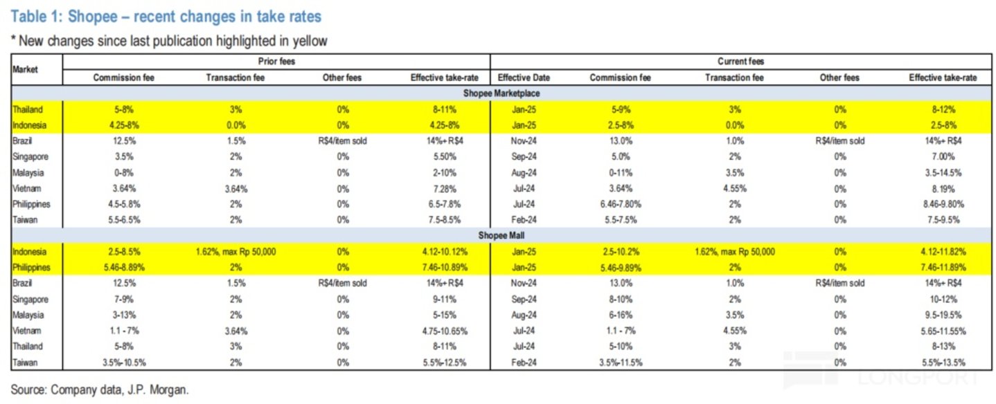 变现率的角度,据公司的披露 2025 年初 Shopee 在泰国和印尼市场又进行了新一轮的变现率上调,大致将变现率的区间上限上调了 1pct。并且主要竞争对手 Lazada 和 TikTok Shop 也同样在部分市场上调了变现率。可见在东南亚地区,上调变现率仍是电商行业整体且一致的选择。
