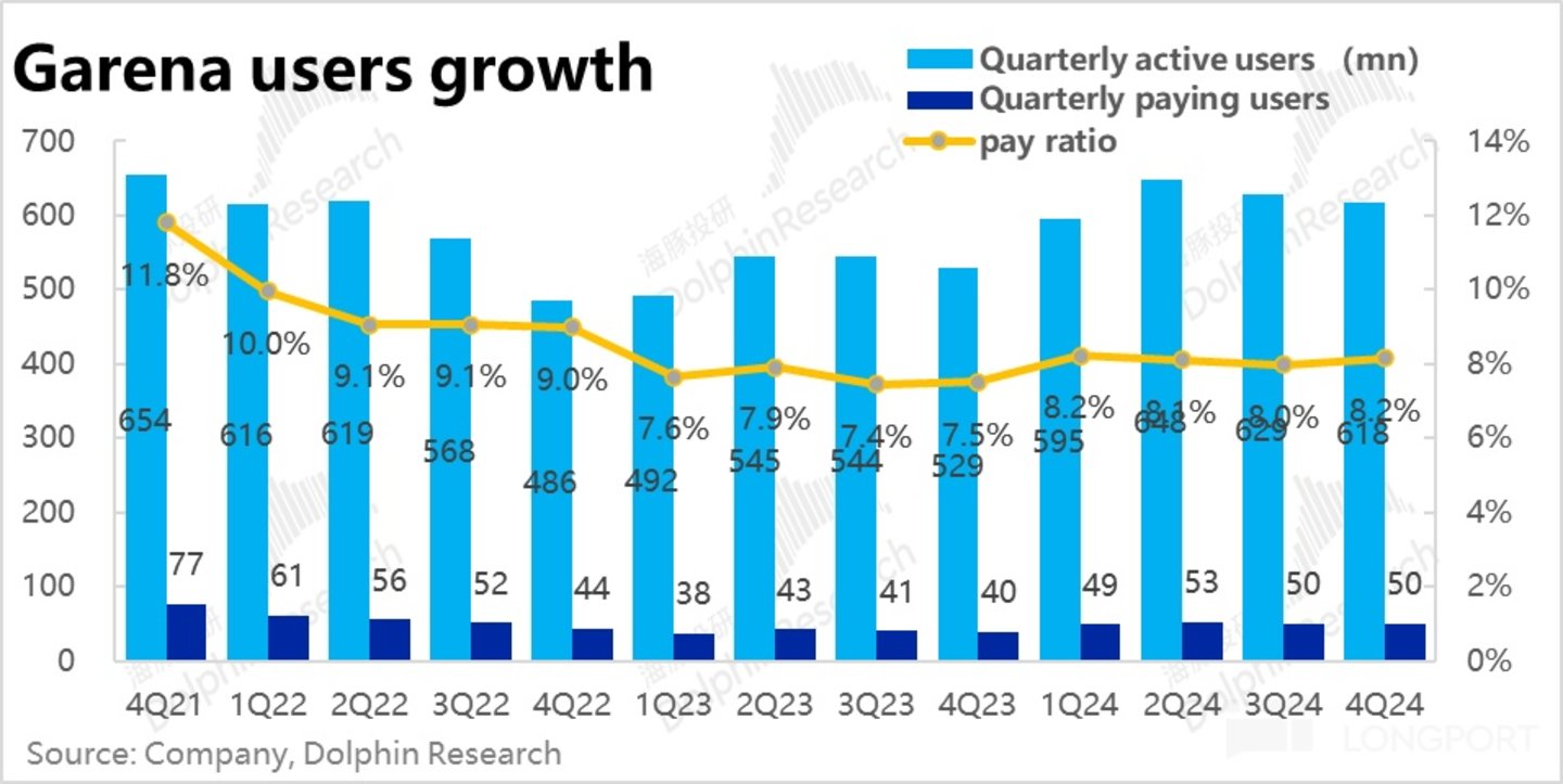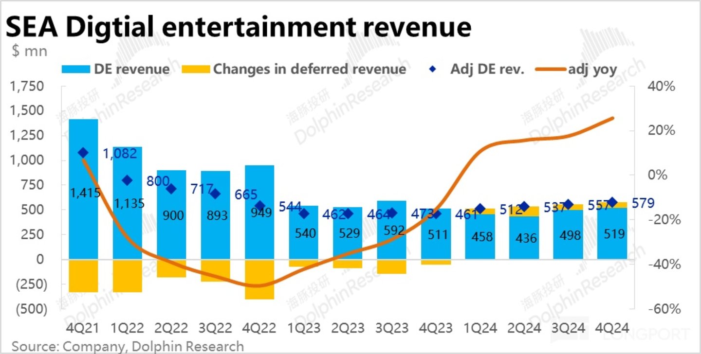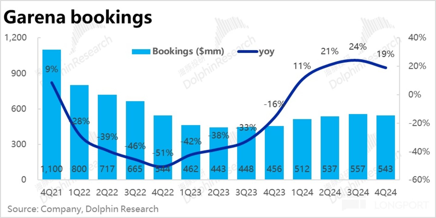 由于递延收入余额变动的影响,Garena 的 GAAP 口径下的收入本季同比增长了 1%,较上季-16% 的表现明显改善,也好于市场预期的同比-1%。但受到调整项影响的财务指标,和底层经营数据展现出趋势相反的情况下,显然后者更加重要。因此,本季度游戏业务的增长整体还是偏向负面的。