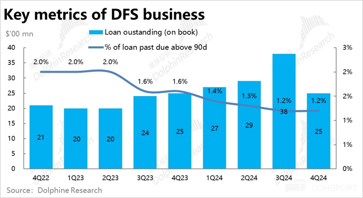 2、未来之星的DFS 金融板块,本季核心指标--未收回的贷款余额到达$51 亿,同比增长 64%,但相比预期的 54.4 亿(+75% yoy)实际是偏低的。
