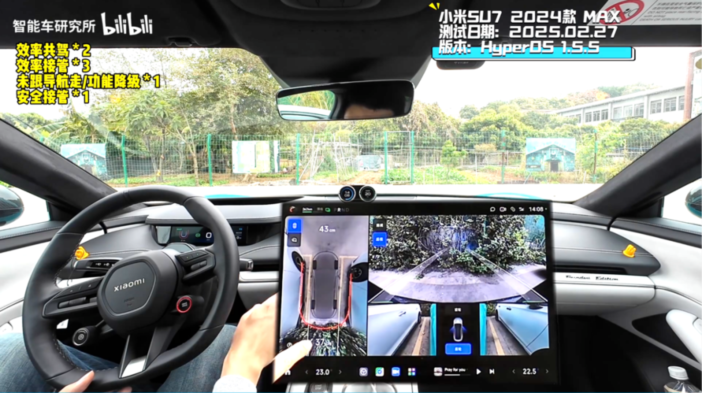 首先上场的是小米SU7 Ultra上的小米HAD,从测试数据上看成绩不错,安全接管2次、未跟导航/功能降级 3次、为提升效率的接管1次和为提升效率的共同驾驶(如踩油门)1次。