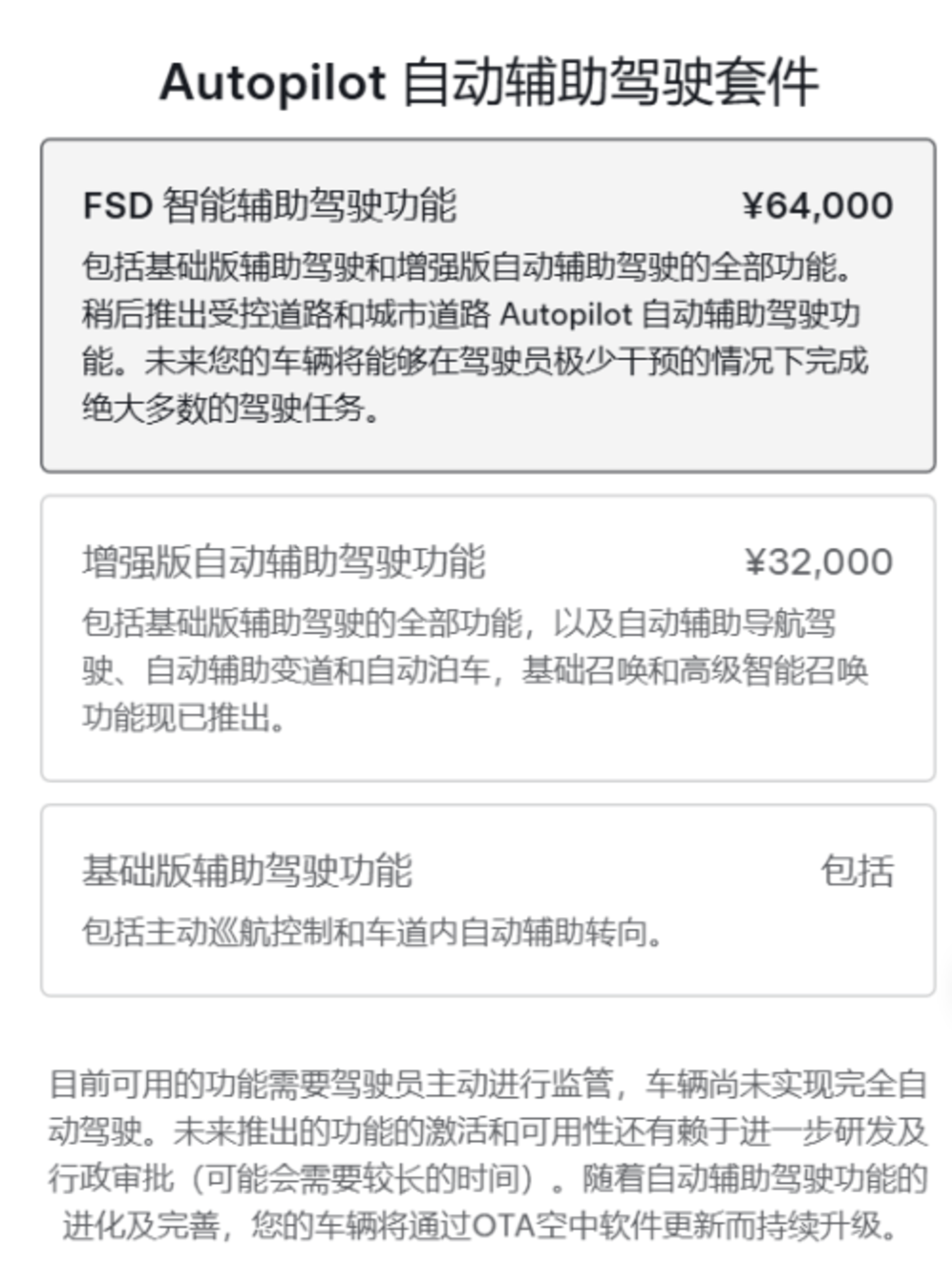 目前唯一的变数是进入中国市场的FSD只是北美FSD的“残血”版本,名称都从“FSD 完全自动驾驶”改为“FSD智能辅助驾驶功能”了。