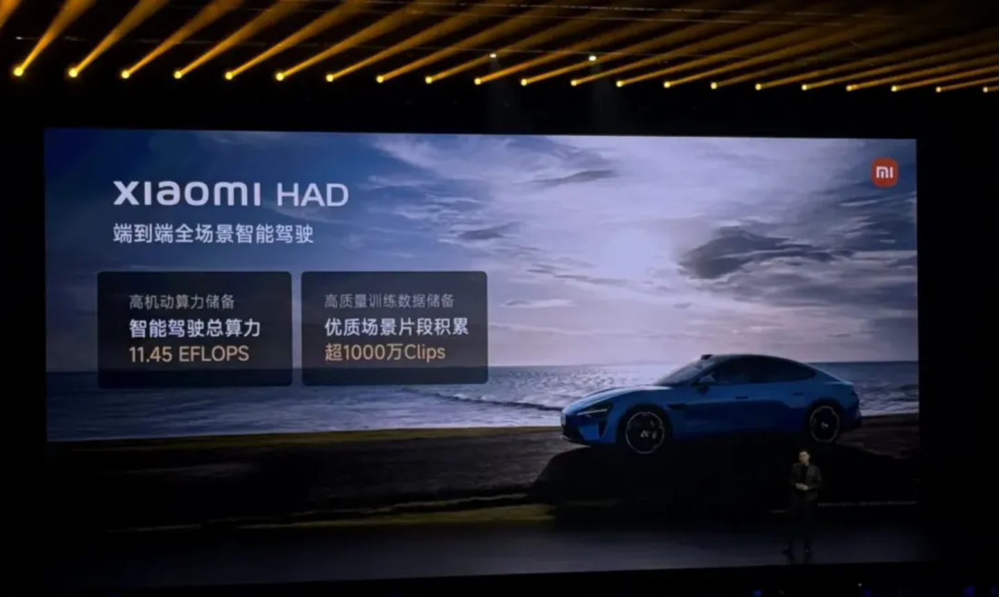 从行车数据和算力储备来看,在小米SU7 Ultra 发布会上雷军提到,用于小米HAD智驾训练的高质量行车数据达到了1000万Clips(当前发布的版本只用到300万Clips)、算力储备达到了11.45 EFLOPS。