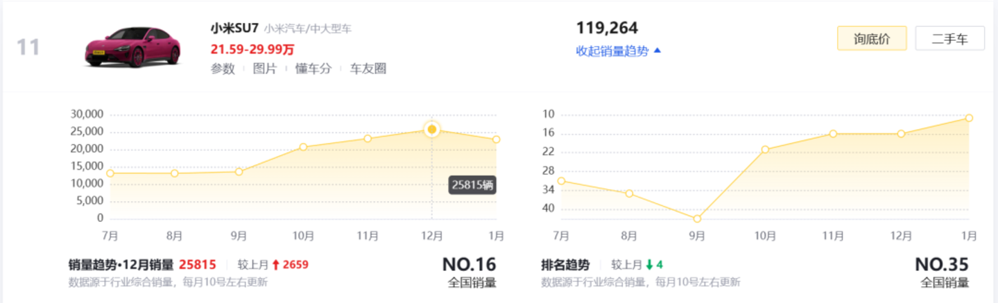 紧接着的2025年1月,小米SU7还是卖出了22897辆,相比之下Model 3只有8009辆。