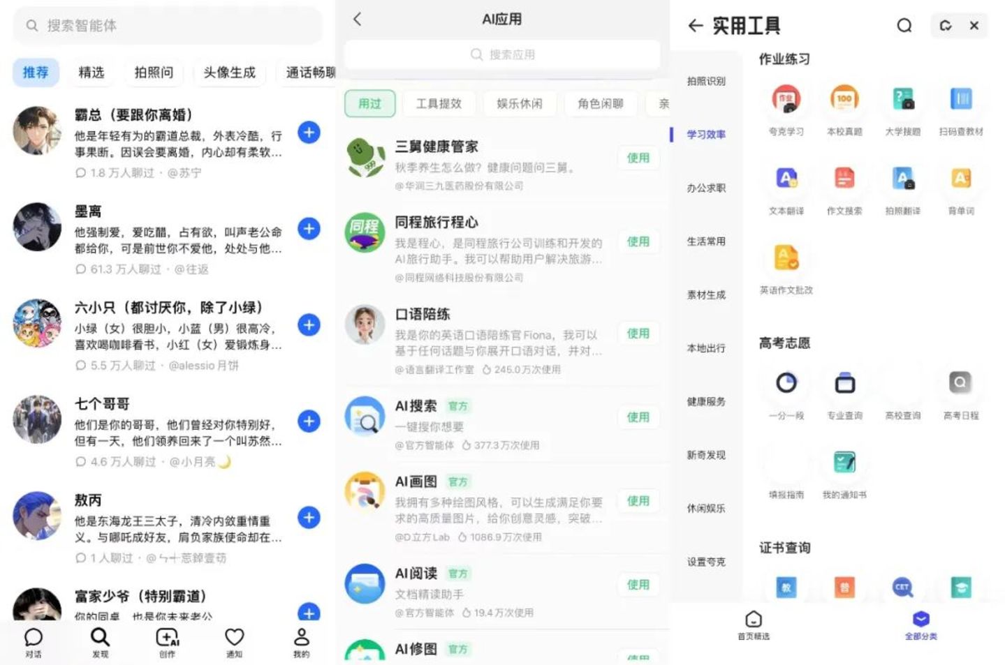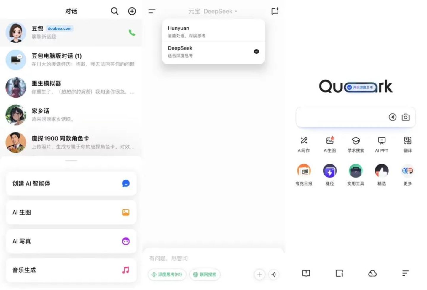 左:豆包 中:腾讯元宝 右:夸克