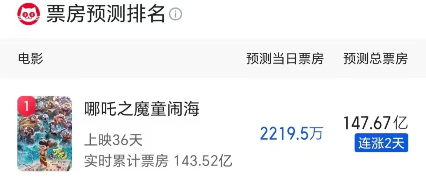 据猫眼专业版数据预测,《哪吒2》的内地票房约为147.67亿,而能否突破150亿,超过《星球大战7》,关键点在海外市场。