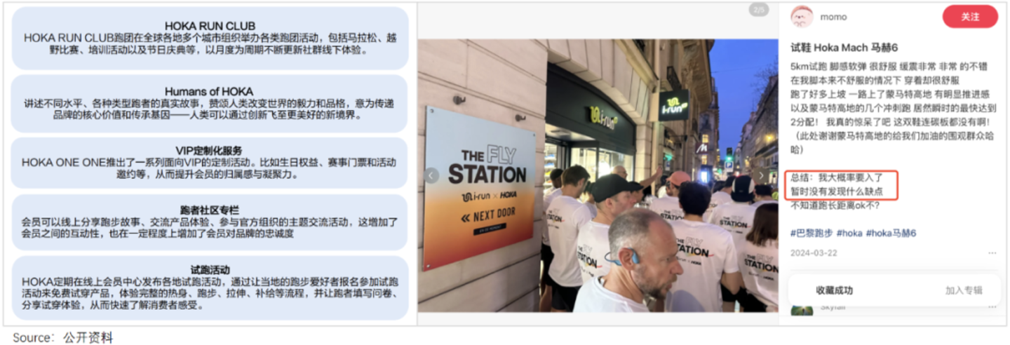 这也不难理解,毕竟在用始祖鸟“镶金”的中年男性眼中,相比团建似的社群活动,门店高大上的视觉冲击,更合身份调性。对受产品、技术吸引的HOKA、昂跑用户来说,参与社团活动是最佳“体验”途径。