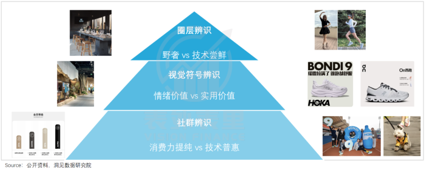显然,通过不同的文化价值输出,始祖鸟与HOKA们构建了各自的品牌信仰,在中产群里各占到了一块山头。