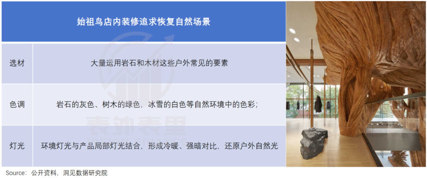 但却在门店上“大做文章”。如下图,不止始祖鸟博物馆,几乎每一家始祖鸟旗舰店都装修得像大自然场景融合的艺术展。