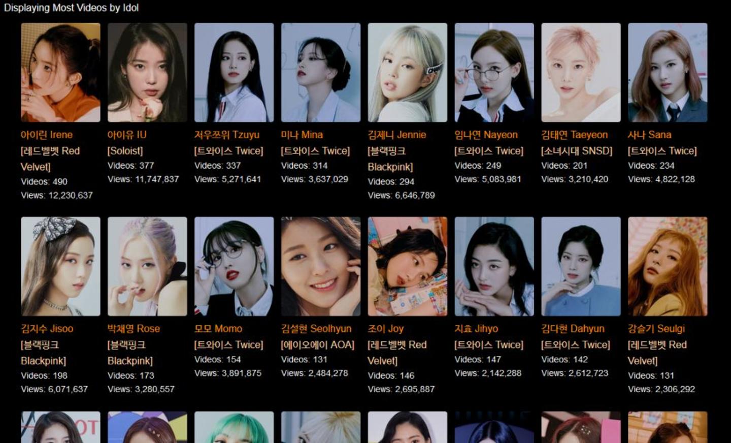 根据Home Security Heroes统计,10大最常被深度伪造色情内容攻击的数据统计中,大部分受害者都是韩国歌手,其中一位歌手的视频数量高达1595个,而另一位韩国歌手的深度伪造视频观看量超过了561万。