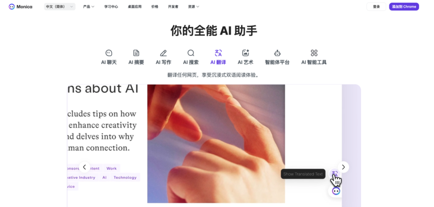 这个团队还有一款更知名的产品,就是去年火爆全网的 AI 助手 Monica。这是一款浏览器插件起家的 AI 应用,通过非常敏锐的需求洞察,让用户在浏览器中,使用 GPT 4o、DeepSeek R1、Claude 3.7 等模型,进行一些非常具体的工作。