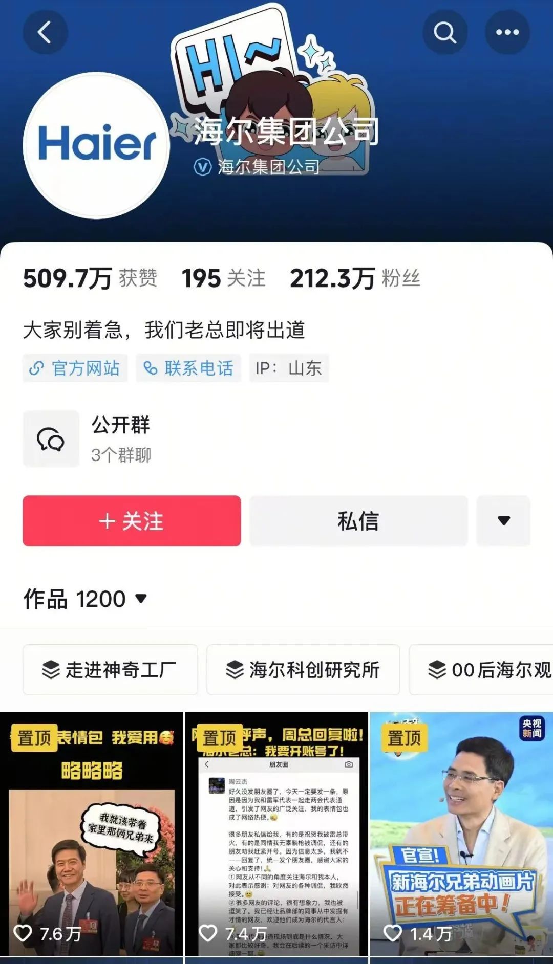 事实上,在过往公开活动和媒体采访中,周云杰也只谈海尔,几乎不提个人。这位进入海尔工作37年的老海尔人,完全将自己融入海尔。但时代不同了,“尽管我个人更倾向于突出海尔形象,但这个时代需要企业家与网友有更好的交流、互动。”周云杰说。