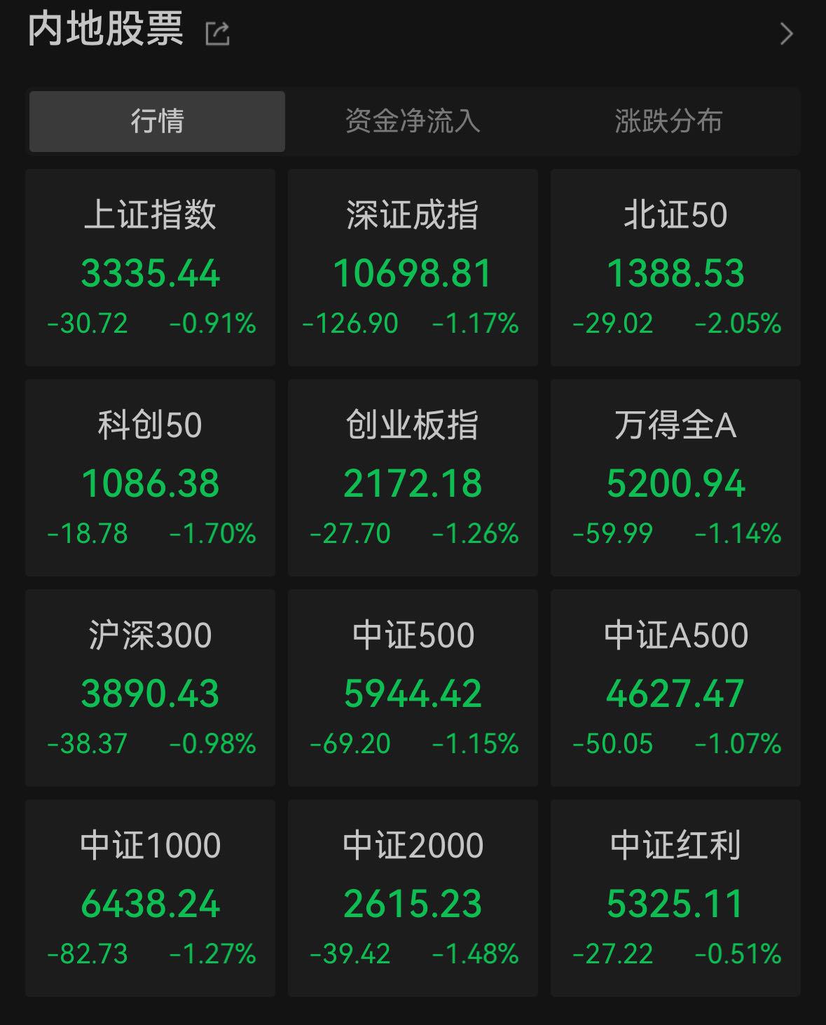 中新经纬3月11日电 周二,A股三大指数集体低开,沪指低开0.91%,深成指低开1.17%,创业板指低开1.26%。
