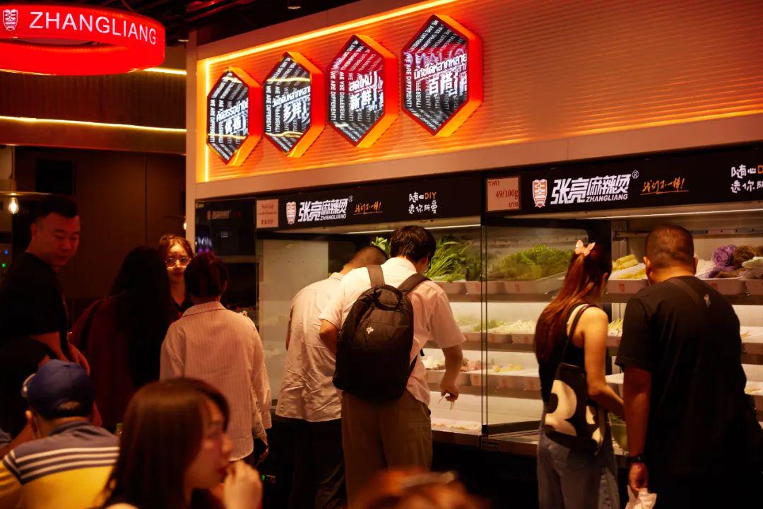 清晰、丰富的食材陈列,流畅的取餐动线,加上单人单锅烫煮的用餐方式,也更契合海外市场。产品领先+体验领先,让张亮麻辣烫能成功破冰,打开当地市场。