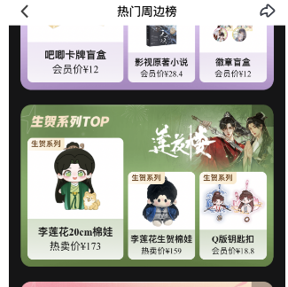 而优酷背靠阿里,在天猫上成立了“锦鲤拿趣旗舰店”,同样也是售卖内容IP衍生品。腾讯视频则多是借助内容IP和第三方品牌合作,打造联名款。而比较突出的芒果TV的小芒电商,定位是新潮国货内容电商平台,但其实做的也几乎是明星周边生意。