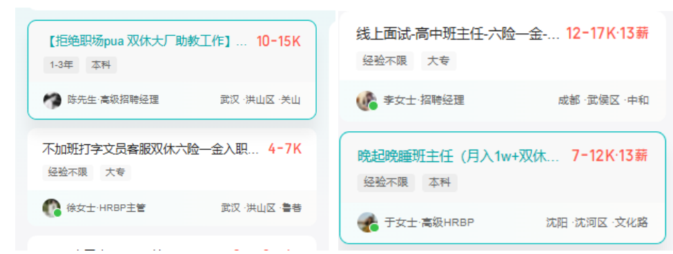部分猿辅导岗位名称写着“拒绝职场PUA”“晚起晚睡班主任”,称下午1点-10点为懒觉班。