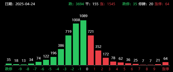 最后简单看下盘面,截至收盘,上证指数涨幅为0.03%,创业板指跌幅为0.68%,港股恒生指数跌幅为0.74%,恒生科技指数跌幅为1.46%。市场成交额缩量至1.13万亿,超过3600家下跌,64家涨停,35家跌停。