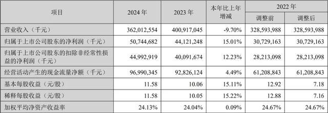 于是就有了上图这个业绩表现,去年宁德时代营收3620亿,同比下降9.7%,归母净利润507亿,同比增长15%。
