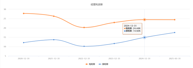 如上图所示,去年毛利率24.44%,比2023年提高了1.5%,净利率14.92%,比2023年大幅度提高了3.3%。