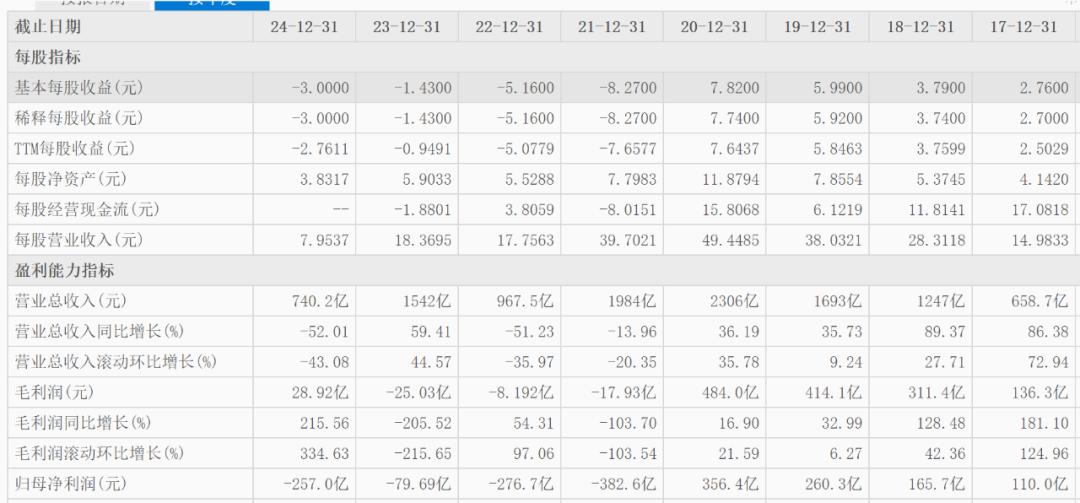 财报显示,富力地产已经连续四年亏损,2021年至今累计亏损达701亿元,其营收也由收购万达酒店那一年的592.8亿元降至177亿元,不足原先的三分之一。2017年,富力净利润211.9亿元,2024年则净亏损177.1亿元,形成了巨大的反差。