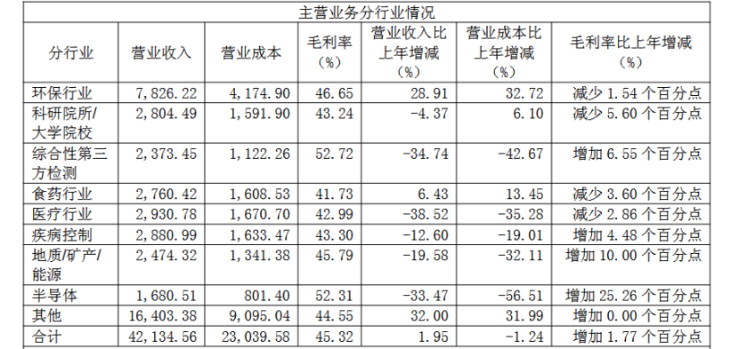 “与上年同期相比半导体行业、地质/矿产/能源行业的毛利率波动也比较大,主要是行业内销售的产品不同,分析仪器和实验室解决方案的毛利率相差较大。”莱伯泰科进一步表示。