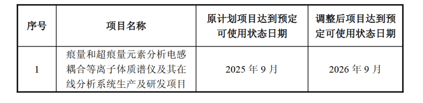 募投项目方面,莱伯泰科存在部分募投项目延期的情况。根据公司最新公告,决定将“痕量和超痕量元素分析电感耦合等离子体质谱仪及其在线分析系统生产及研发项目”达到预定可使用状态的时间由原计划的2025年9月延长至2026年9月。