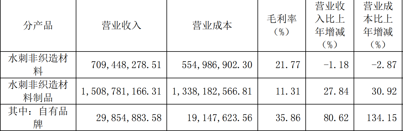 作为公司的核心业务之一,水刺非织造材料业务在2024年展现出稳定的发展态势。其中,水刺非织造材料制品在2024年实现营收达15.09亿元,同比增长27.84%。