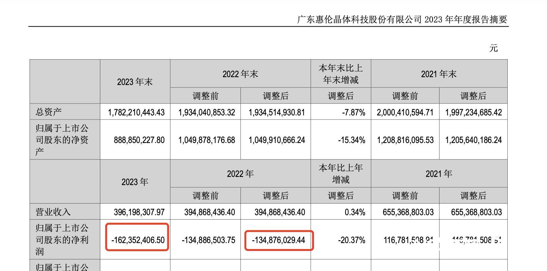 惠伦晶体的业绩已经连续三年出现亏损。目前,惠伦晶体未公布2024年年报,早前的2024年业绩预报显示,2024年,公司预计净利润为负值,归属于上市公司股东的净利润亏损在1.5亿元—2.5亿元。2023年、2022年,惠伦晶体归属于上市公司股东的净利润分别亏损1.6亿元、1.3亿元。