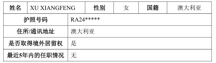 众所周知,在正式文件中用全字母表示的名字一般都是外国人,而查询威士顿的公告,XU某确实已经是澳大利亚公民了。