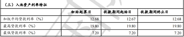 另据南银法巴消金披露的《2024年第二期个人消费贷款资产证券化信托受托机构月度报告第5期》显示,入池资产最高贷款利率19.8%,最低贷款利率7.2%,加权平均贷款利率12.68%。