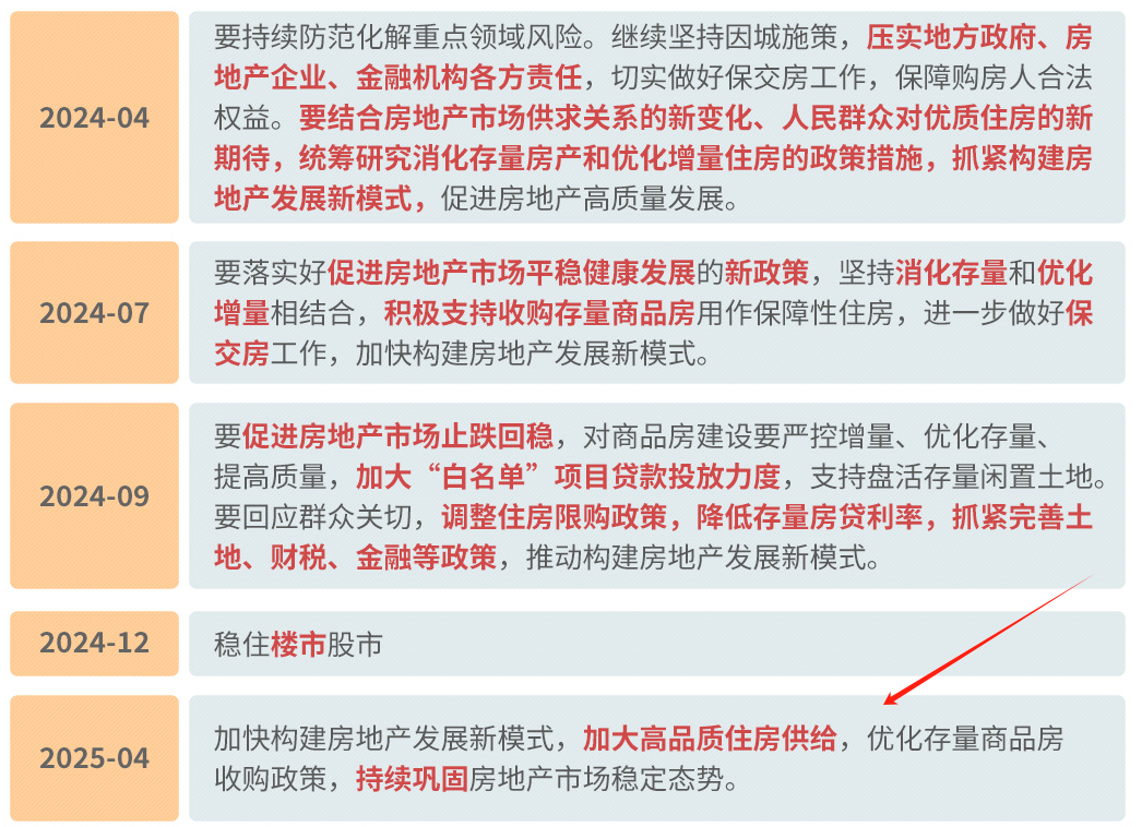 要加快构建房地产发展新模式,加大高品质住房供给,优化存量商品房收购政策,持续巩固房地产市场稳定态势。