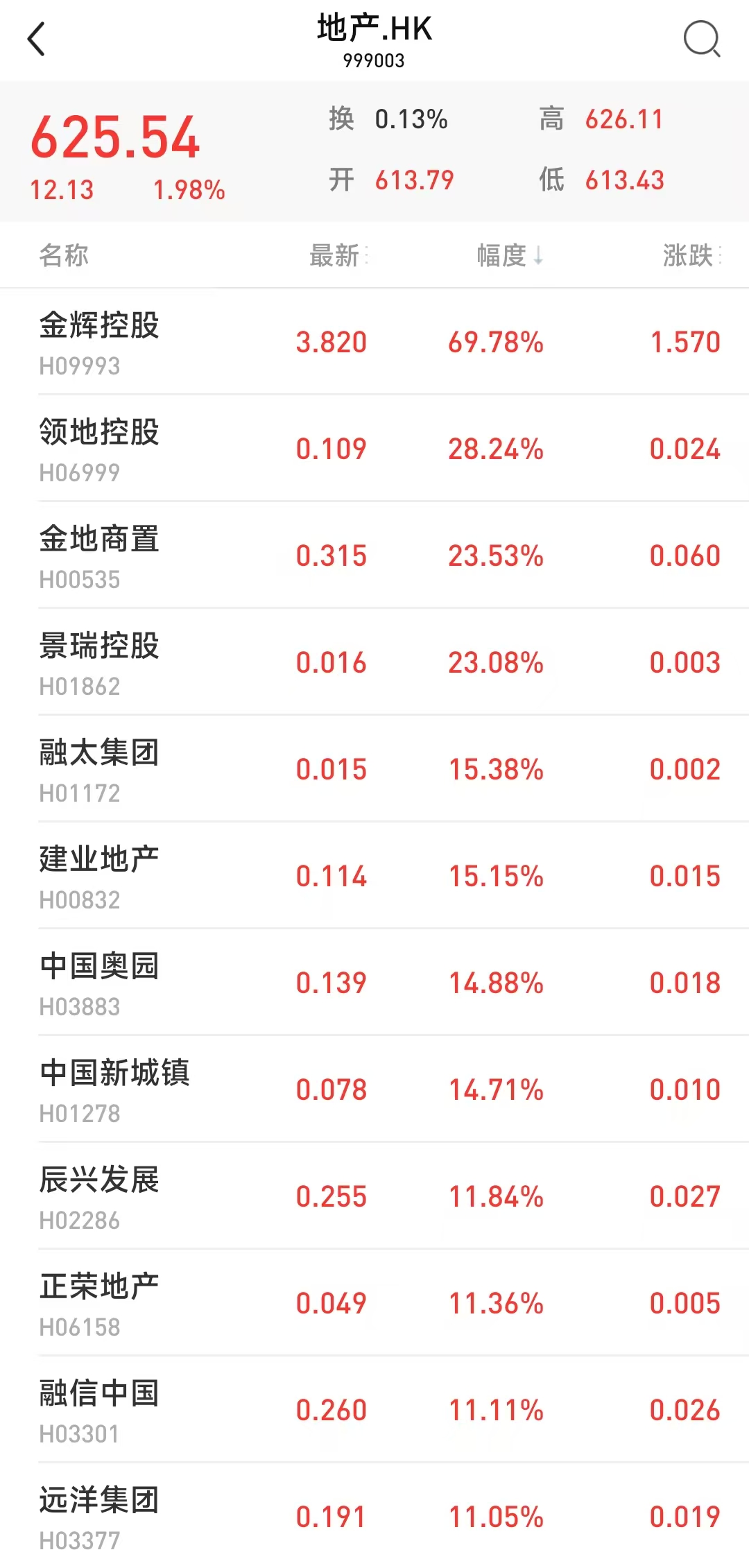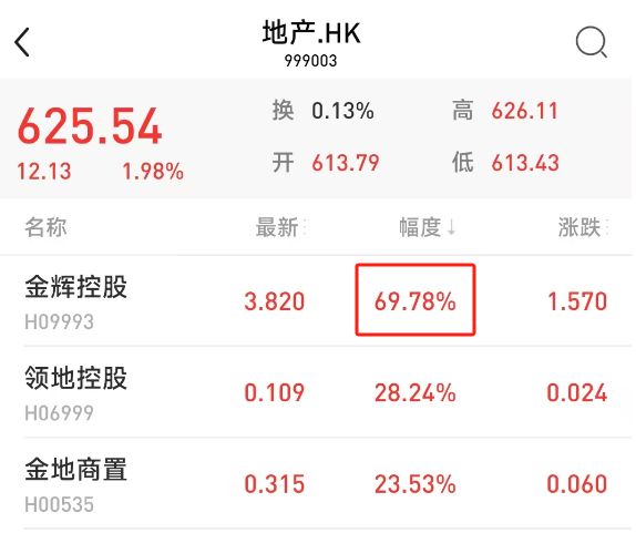 港股多数地产股上扬,遍地飘红,其中最高涨幅一度超过80%。