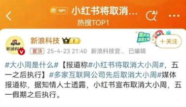 最近,小红书一纸全员信迅速引发行业震动:宣布自5月1日起正式取消“大小周”工作制度,同步解除员工的竞业限制。