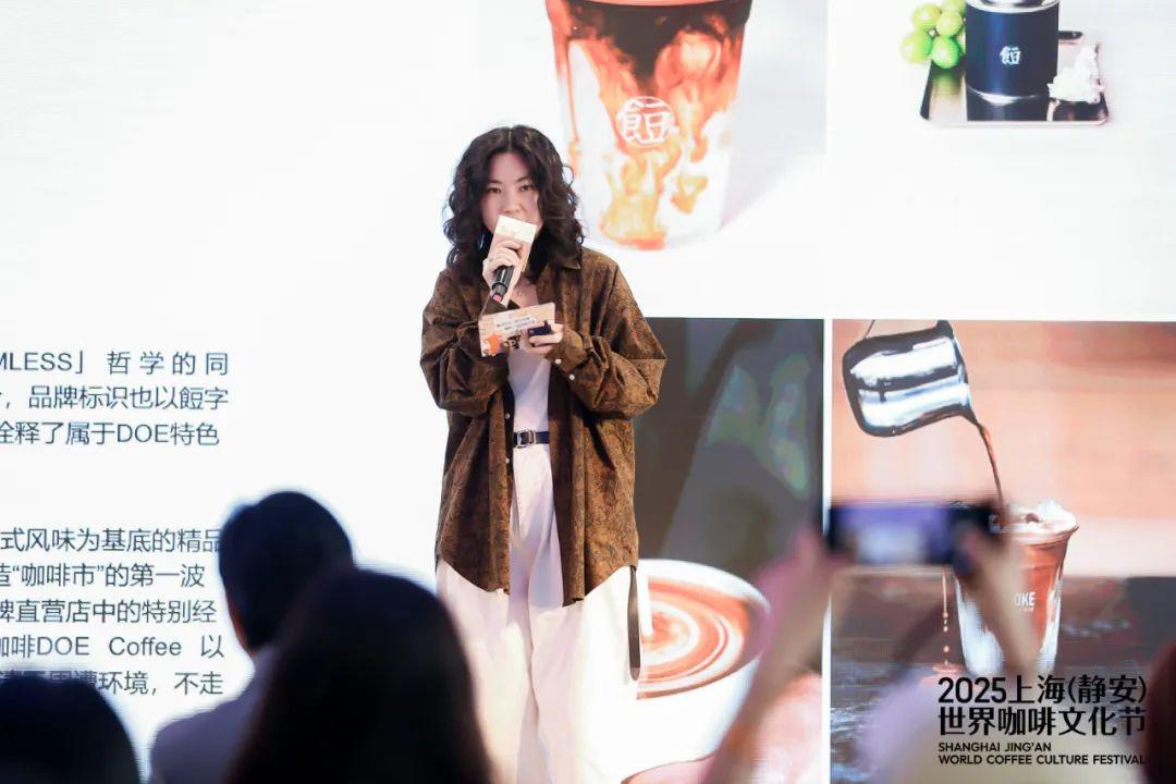 DOE COFFEE 餖咖啡上海咖啡主管大飞在主题演讲中分享以咖啡为媒介,连接热爱潮流文化与街头时尚,把单一的咖啡店发展成为融合的品牌集合店的创新业态。她提到:“餖咖啡秉承「BE FORMLESS」哲学,融合东方智慧与本土特色,通过线下空间打造咖啡体验系列活动,聚合热爱生活的伙伴交流和分享与咖啡相关的一切。”十一年来,从STAY WOKE到STAY GOLD,用咖啡与热爱构筑美好生活方式。