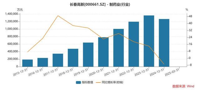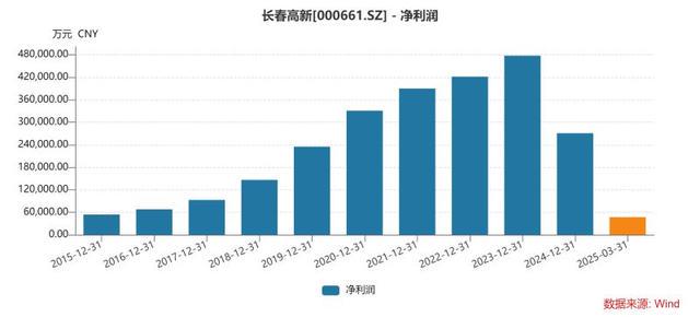 一家营收过百亿元的公司,净利润降幅超过40%意味着公司利润的大大缩水。更值得注意的是,随着年报而来的一季报同样延续了颓势,2025年长春高新营收及净利润再度双降,其中净利润同比降幅达44.95%。