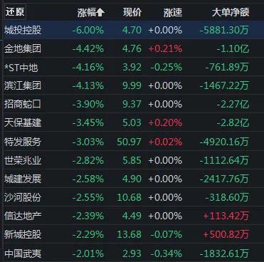 房地产板块冲高回落,招商蛇口、城投控股、城建发展等股午后跳水翻绿。