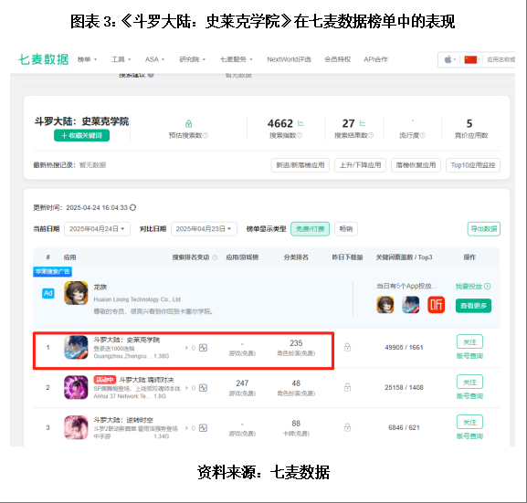 而4月24日,时代商业研究院查询七麦数据网站发现,《斗罗大陆:史莱克学院》在中国App Store免费榜总榜中未见其排名,在App Store免费榜子分类“角色扮演”中的排名为第235名;另外,《野兽领主:新世界》在iOS免费榜和畅销榜中均未见上榜。