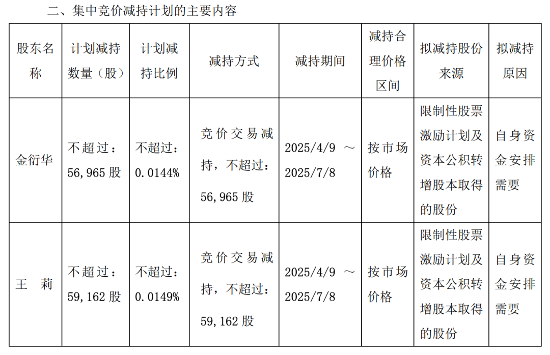 在此之前,金衍华、王莉已经分别减持套现1486.43万、1291.4万。