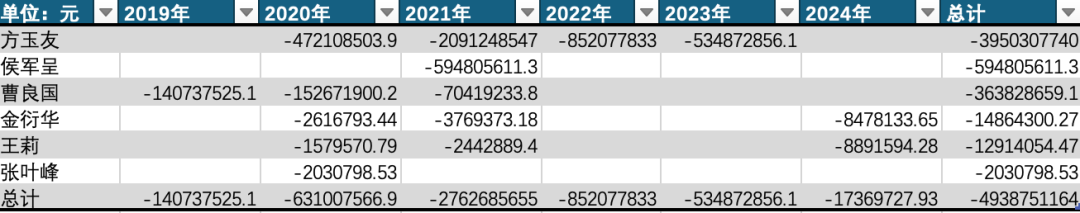 在减持套现过程中,实控人夫妇及其家族成员减持最多,珀莱雅实控人为侯军呈、方爱琴夫妇,方爱琴的弟弟方玉友减持套现超39.5亿,侯军呈减持套现超5.94亿,上市以来股东已经累计套现超49.38亿。