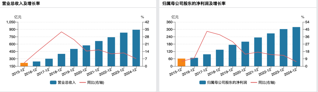 4月25日晚间,宜宾五粮液股份有限公司(五粮液,000858.SZ)发布2024年度报告以及2025年一季度报告。2024年,五粮液实现营业收入891.75亿元,同比增长7.09%;归母净利润318.53亿元,同比增长5.44%。今年一季度五粮液实现营收369.4亿元,同比增长6.05%;归母净利润148.6亿元,同比增长5.80%。