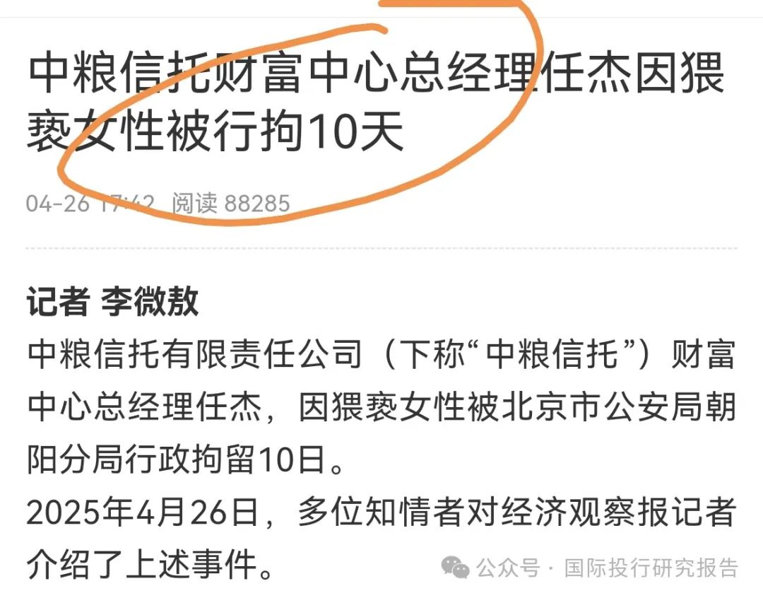 4月26日午间,中粮信托公司办公室一位工作人员对经济观察报记者介绍,公司已经免去了任杰担任的所有职务,并且对该事件会做进一步的核查处理。