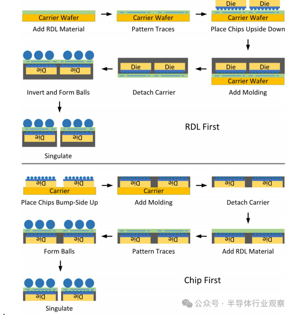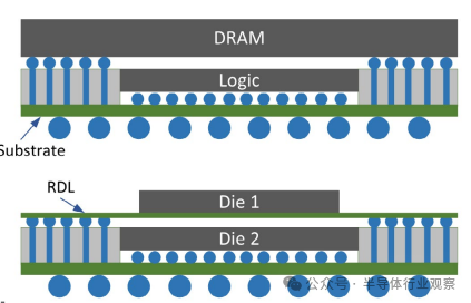这是总体思路,适用于大多数先进封装 . 但是,许多元件都可以起到重新路由信号的作用,包括中间膜和封装基板 . 从技术上讲,这些都是 RDL . 但 RDL 一词似乎有更具体的用法,指的是在裸片金属层上方添加路由层,在裸片钝化后添加,或在裸片背面添加,重新路由硅通孔(TSV)。